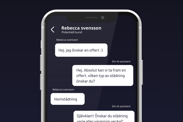 AI:n svarar på vanliga frågor, hanterar offerter och ger support utan väntetider.